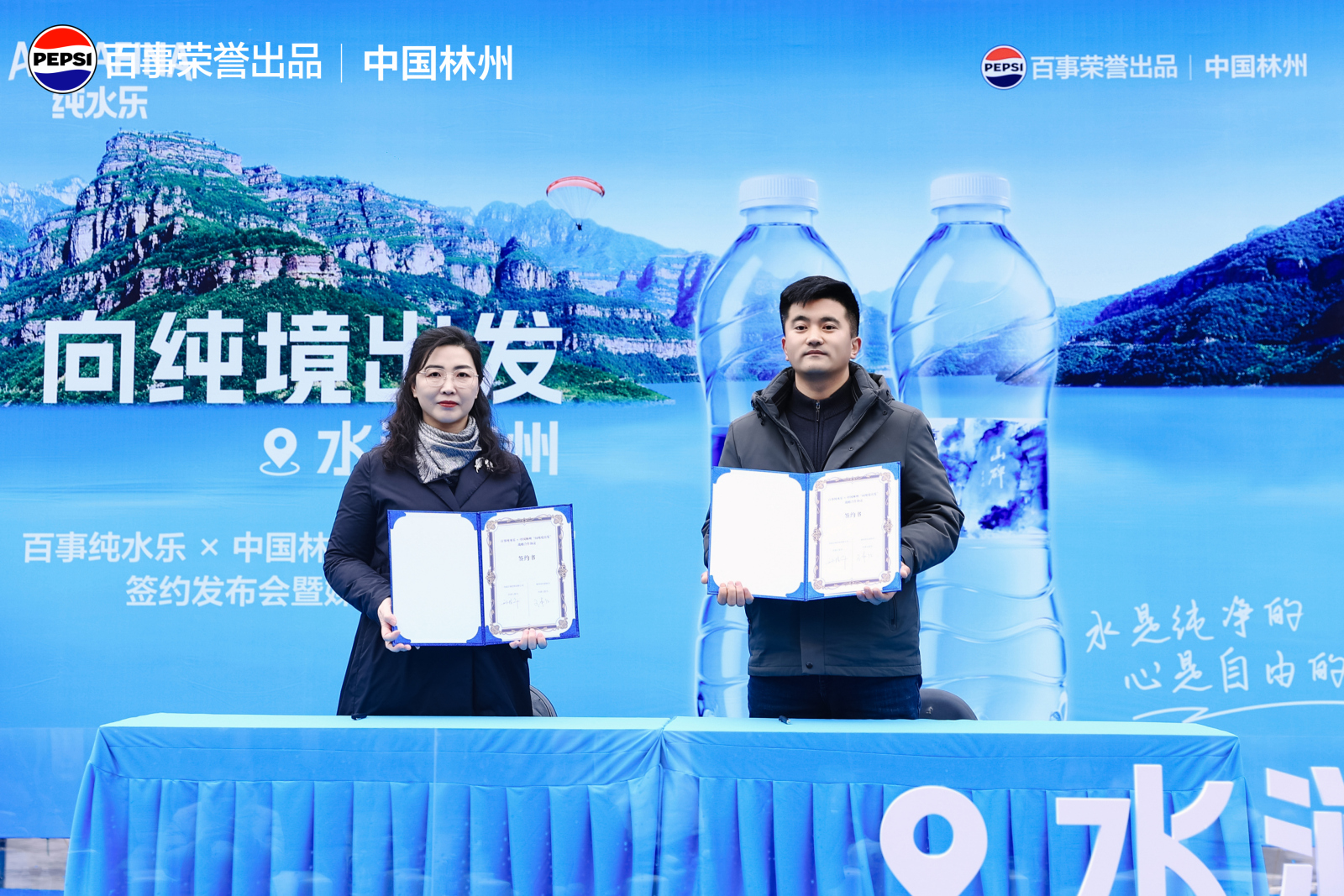 大河网讯 12月23日,百事纯水乐×中国林州 “向纯境出发”签约发布会在林州举行。林州文旅与郑州百事饮料有限公司达成战略合作,共同推出“水润林州”文旅主题饮用水,为“行走河南•读懂中国”文旅品牌注入新活力。林州市旅游和文化广电局副局长刘增太、百饮河南行销公司总经理何强文及相关负责人出席了签约仪式。