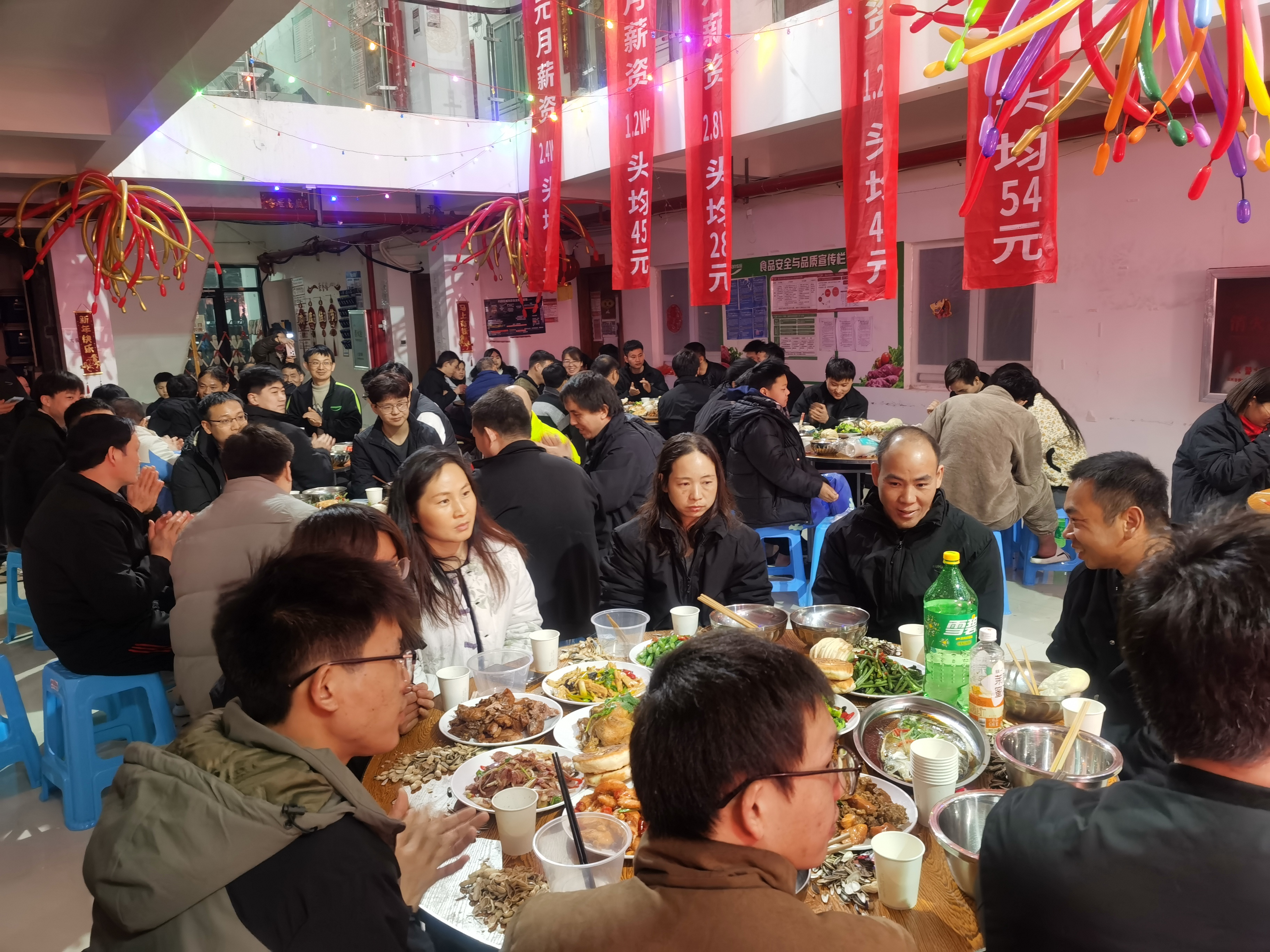 走进内乡牧原综合体生活区,红灯笼高高悬挂,春联贴满门窗,处处洋溢着浓浓的年味儿。食堂里,工作人员早已备好丰盛的团圆饭,清蒸鲈鱼、蒜蓉蒸生蚝、酱汁肘子等一道道美味佳肴陆续上桌,香气扑鼻;活动现场,趣味游戏、文艺表演轮番上演,员工与家属们围坐在一起,唠家常、玩游戏、看节目,欢声笑语不断,暖意融融。