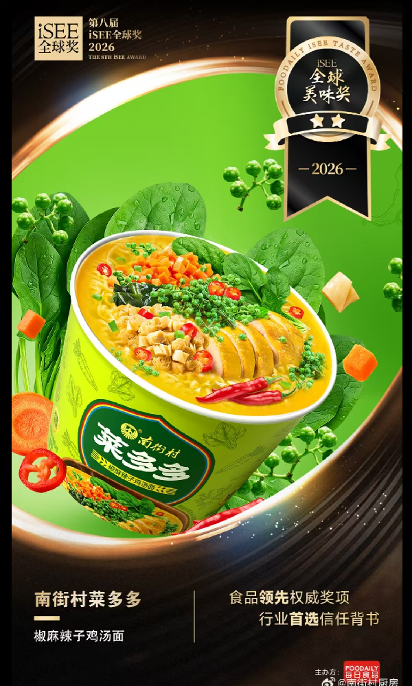 iSEE全球奖是食品领域极具国际影响力的权威奖项,秉持“国际标准+独立权威评审+非商业化”原则,吸引全球5688个案例申报,评审团由顶级名厨、美食家及专业感官评定机构组成,从色、香、味、意、形、养六大维度进行严苛评定,获奖产品代表着国际认可的美味与品质标杆 。南街村集团两款方便面产品从众多参赛作品中脱颖而出,斩获2星大奖,充分彰显了其产品的硬核实力与市场竞争力 。