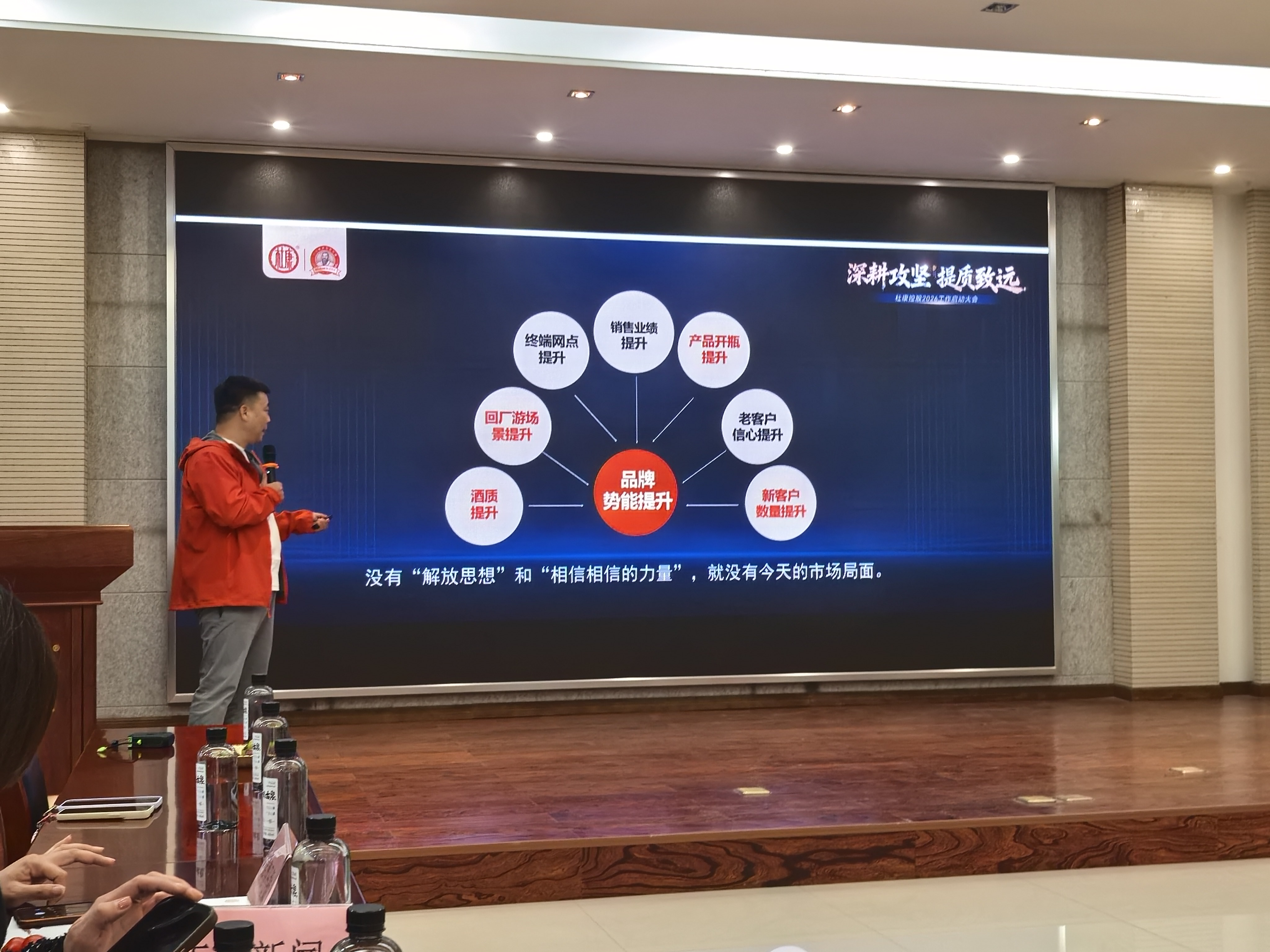 座谈会上,柳向阳通过PPT全面介绍了2025年杜康控股的工作成效,刚刚过去的一年,杜康主营业务省内市场实现了超30%的逆势增长!柳向阳表示,2025年公司实现了市场布局、酒质、品牌、业绩等多维提升,完成了河南省内市场的初步布局。2026年,杜康将以“稳”为核心——稳政策、稳客户、稳市场、稳增长、稳盈利,转变增长方式,提升经营质量,强化产品、组织、市场、品牌四大能力,坚持向内要效益、向外要业绩,坚定“河南称王”战略目标,做大洛阳、做强郑州,深耕河南、布局全国。