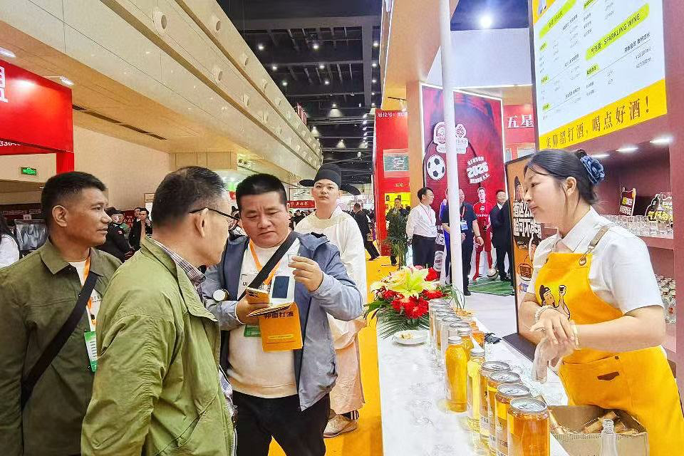 这种沉浸式“打酒铺”体验打破传统卖酒方式,让消费者亲身参与选酒、打酒全过程,兼具传统仪式感与现代潮饮趣味性,吸引大量客商及消费者驻足体验、打卡互动。
